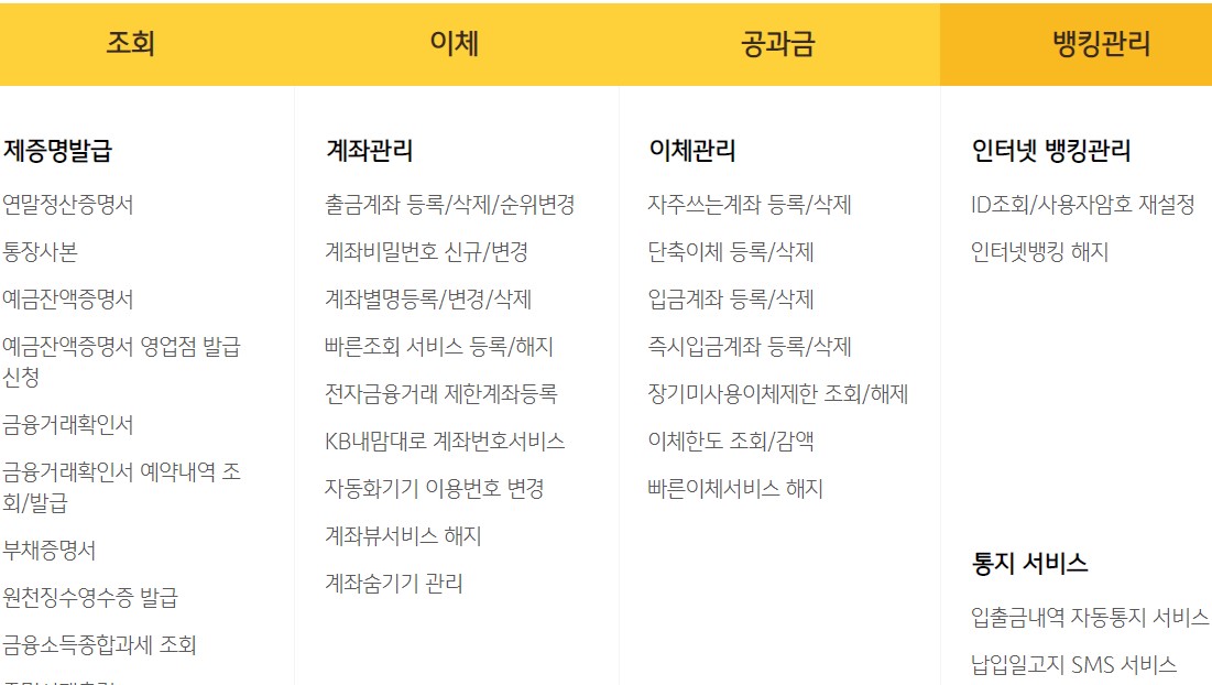 국민은행 사이트를 들어간 후 공동 인증서 또는 스마트폰을 통하여 로그인을 해주시기 바라요.