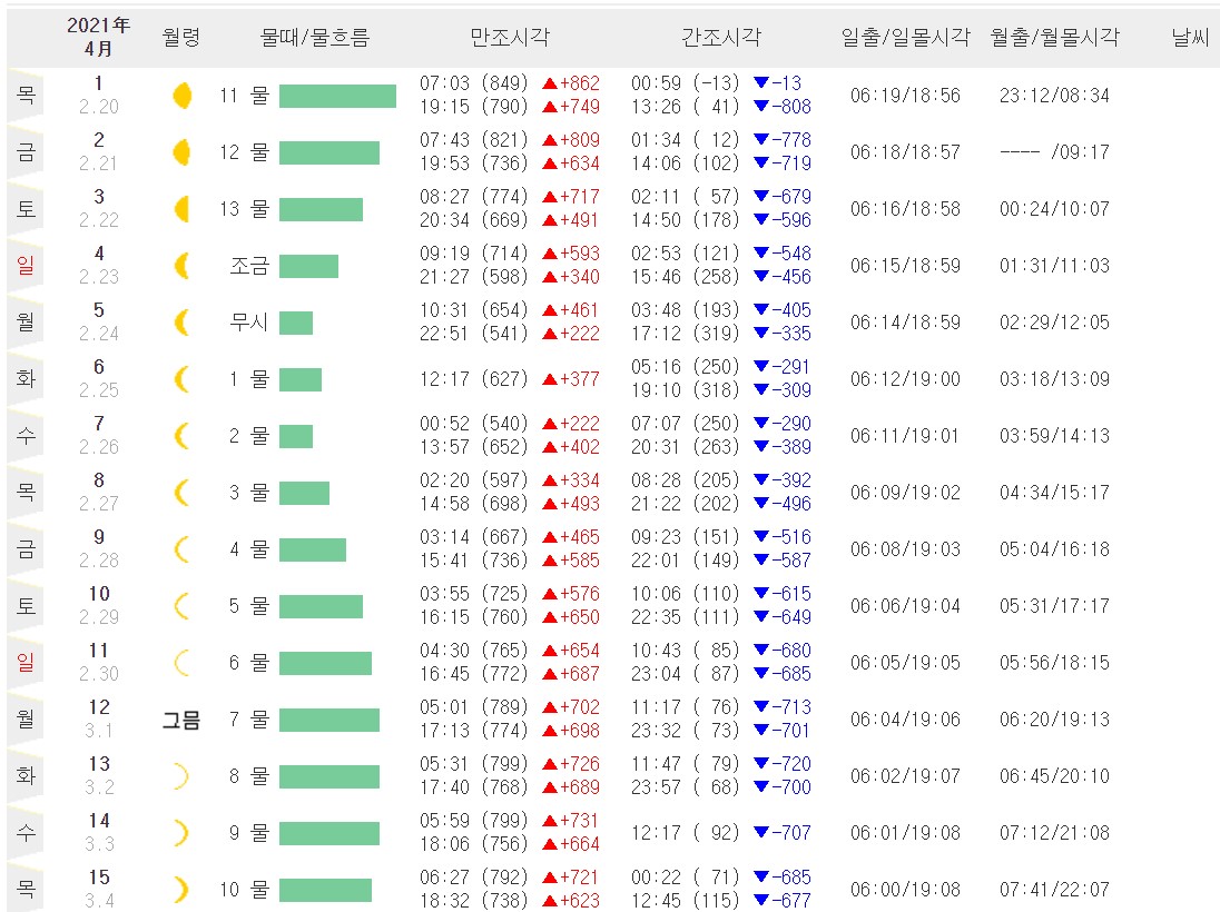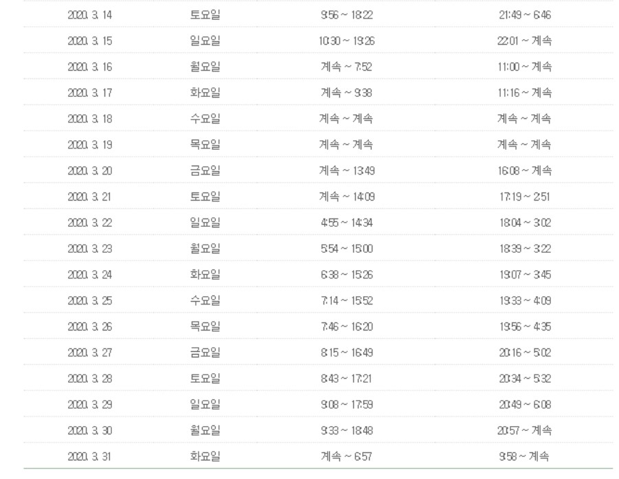 제부도 물때 시간표는? (3월, 4월)