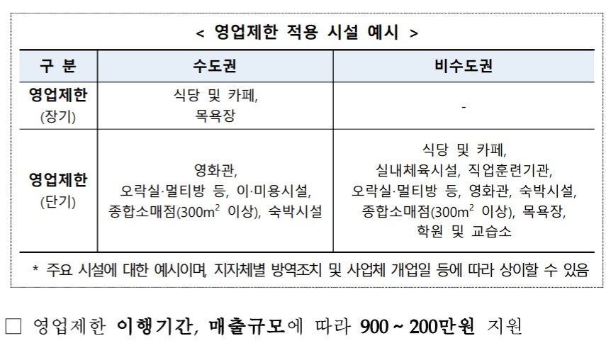 2020년 8월 16일 ~ 2021년 7월 6일 중 중대본 및 지자체 방역조치로 영업제한 이행하고