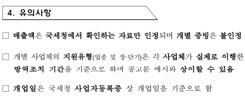 다수 사업체 운영자 인경우 홈페이지에 본인인증, 계좌, 매출 감소 증빙서류를 제출
