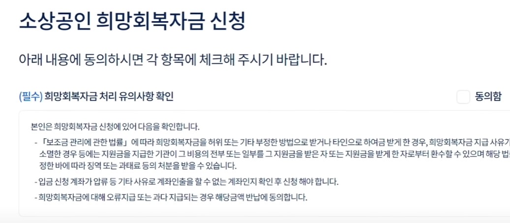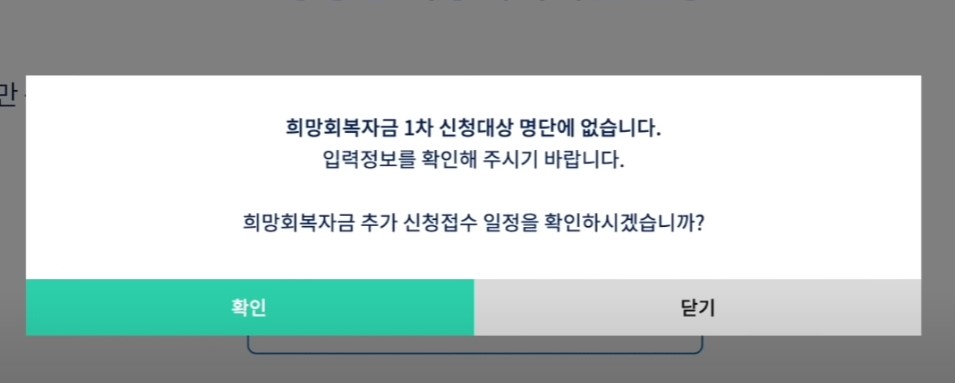 이번 5차 재난지원금 소상 공인 희망회복자금의 지원대상자가 아니라고 통보받은 소상공인은
