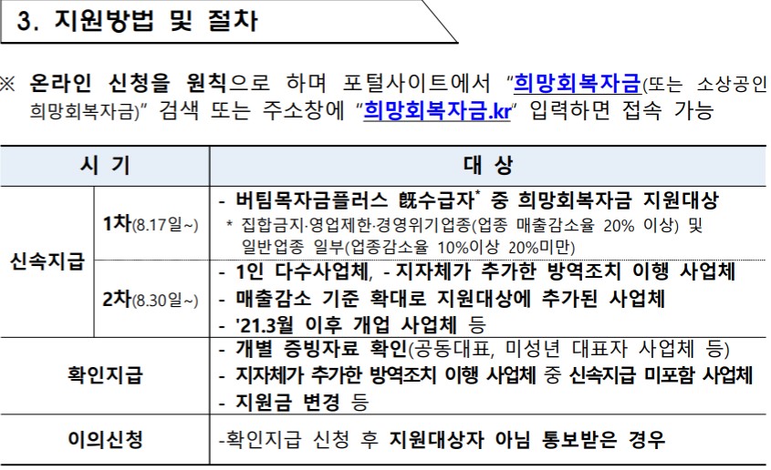 수령받을 수 있으며 시기는 9월 말로 정해졌습니다. 또는 지원 유형을 변경하려는 소상공인도