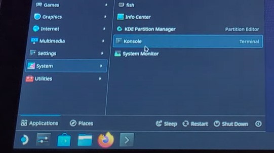 3) 데스크탑 모드에서 스팀덱 버튼을 누르고 system - KDE 파티션 매니저 이동