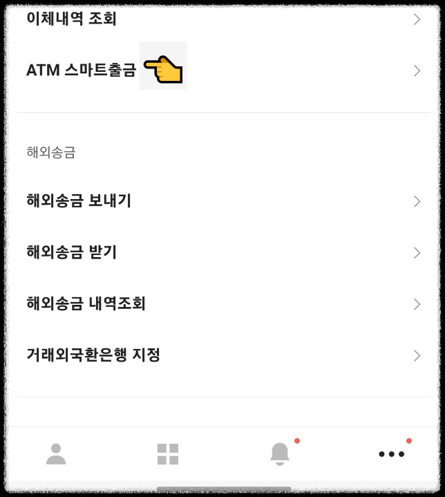 6) 스마트폰 카카오뱅크 앱을 켜고 전체메뉴에 'ATM 스마트출금' 으로 이동합니다.