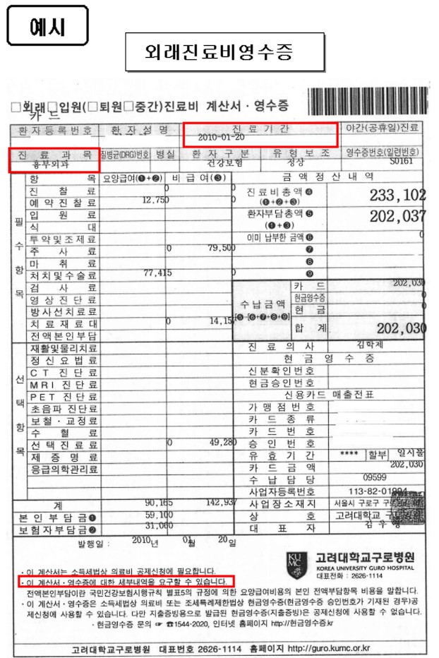 - '17년 4월 이전 계약: 비급여 5만원 이상(진료비영수증 장당)