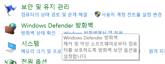 1️⃣ 제어판을 이용하여 윈도우에서 방화벽 끄기