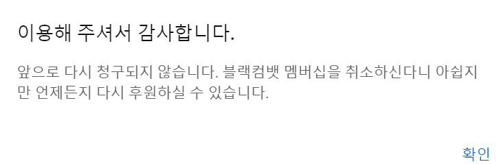 6. 이제 멤버십 종료가 되어 다음달부터 청구되지 않음을 확인할 수 있습니다. 다만 지금 멤버십을 취소하여도 남은 이용기간은 이상없이 멤버십 서비스를 이용할 수 있으니 안심하시길 바랍니다.