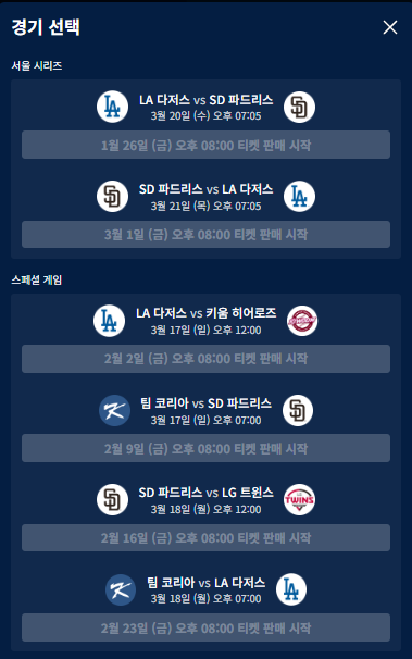 LA 다저스 샌디에이고 티켓팅은 1월 26일 오후 8:00 부터 시작이 되며 3월 1일까지 매주 금요일 오후 8시에 한 경기씩 오픈이 되니 MLB 팬이라면 이번기회를 놓칠 수 없겠죠.
