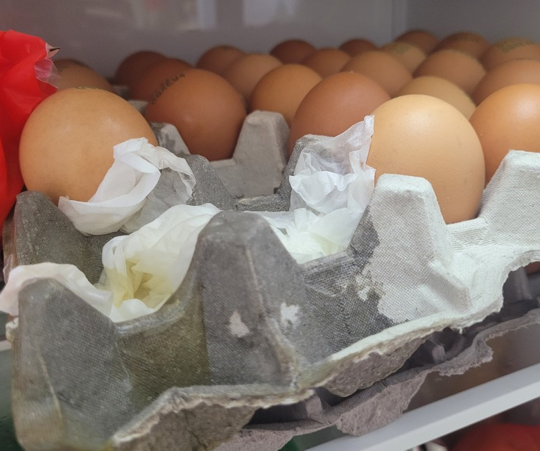 😨 박스를 열어보니 6~7 개의 달걀이 깨져서 여기저기 묻어있드라구요.